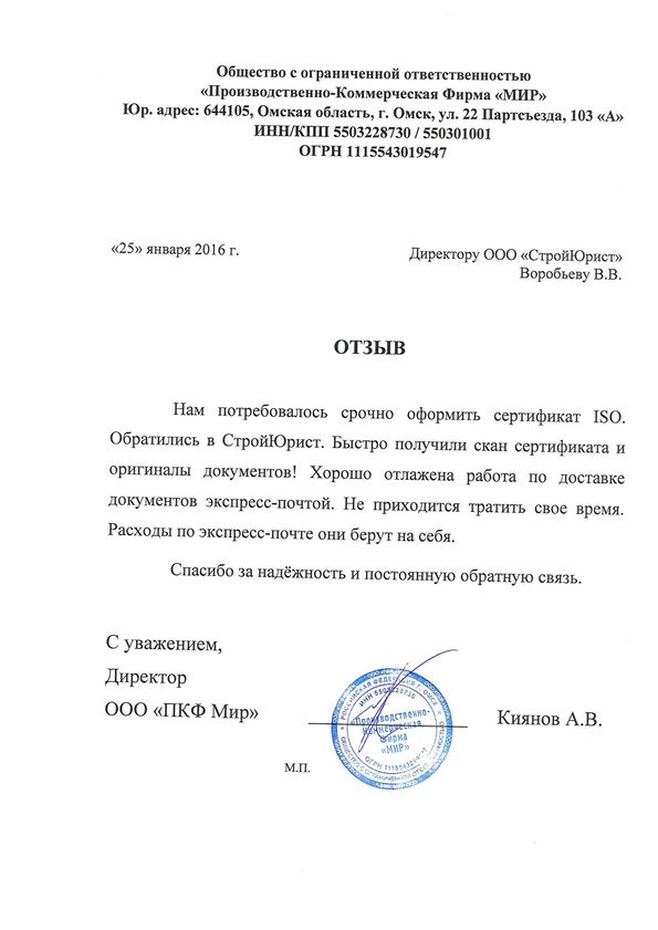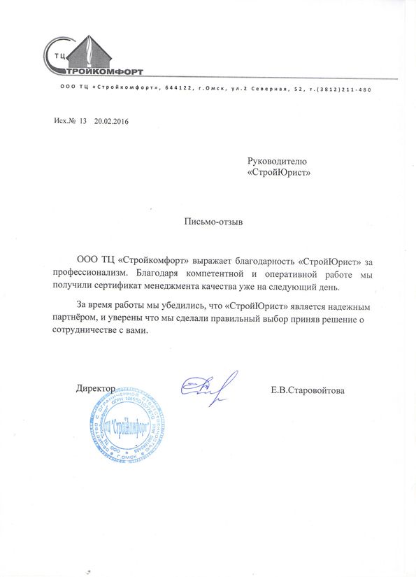Отзывы клиентов "СтройЮрист" по ISO в Чите